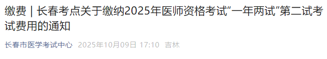 - · 官方提醒!吉林長春2025年醫(yī)師資格(二試)繳費(fèi)10月16日截止!
