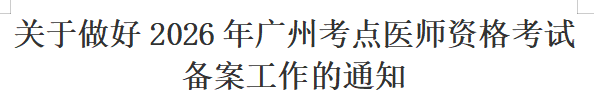 根據(jù)《廣東省衛(wèi)生計(jì)生委辦公室關(guān)于做好醫(yī)師資格考試報(bào)名備案工作的通知》(粵衛(wèi)辦函〔2013〕303號)、《醫(yī)師資格考試廣東省考區(qū)辦公室關(guān)于做好2026年醫(yī)師資格考試備案工作的通知》(粵醫(yī)考辦〔2025〕32號)、《廣州市衛(wèi)生健康委辦公室關(guān)于進(jìn)一步完善醫(yī)師資格考試備案及報(bào)名工作要求的通知》的文件精神,為做好廣州考點(diǎn)2026年醫(yī)師資格考試備案工作,現(xiàn)通知如下: