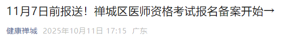 11月7日前報送!禪城區(qū)醫(yī)師資格考試報名備案開始→