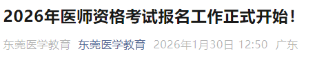 雙網(wǎng)報(bào)名!廣東東莞2026年醫(yī)師資格考試報(bào)名審核安排已出!請相關(guān)考生及時(shí)查看,做好報(bào)名審核準(zhǔn)備!