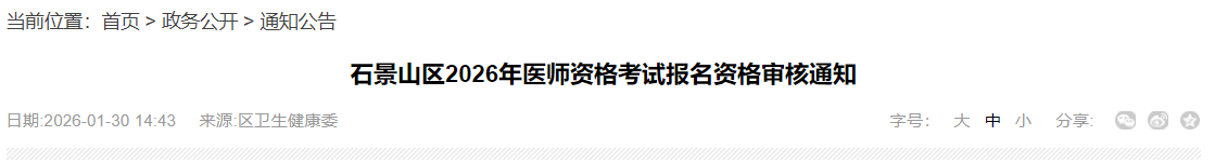 現(xiàn)將2026年石景山區(qū)醫(yī)師資格考試報名資格審核工作有關(guān)事項通知如下。