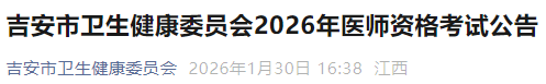 根據(jù)國(guó)家衛(wèi)生健康委員會(huì)醫(yī)師資格考試委員會(huì)公告(2026年第1號(hào))、省衛(wèi)生健康委公告(2026年第1號(hào)),臨床、口腔、公共衛(wèi)生類別和鄉(xiāng)村全科執(zhí)業(yè)助理醫(yī)師醫(yī)學(xué)人文部分啟用修訂后的考試大綱。結(jié)合我市實(shí)際,現(xiàn)就江西考區(qū)吉安考點(diǎn)2026年醫(yī)師資格考試有關(guān)事項(xiàng)公告如下。