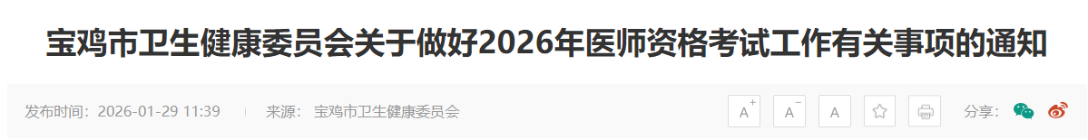 陜西寶雞2026年醫(yī)師資格考試報(bào)名&審核&考試安排及要求已公布!請相關(guān)考生及時查看,做好報(bào)名審核準(zhǔn)備!