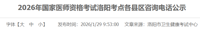 河南洛陽考點官方發(fā)布2026年醫(yī)師資格考試報名各縣區(qū)咨詢電話公示!請相關(guān)考生及時查看,做好報名審核準(zhǔn)備!
