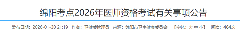 四川綿陽考點2026年醫(yī)師資格考試報名|審核|考試安排已公布!請相關考生及時查看,做好報名審核準備!
