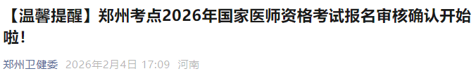 【溫馨提醒】鄭州考點(diǎn)2026年國(guó)家醫(yī)師資格考試報(bào)名審核確認(rèn)開(kāi)始啦!