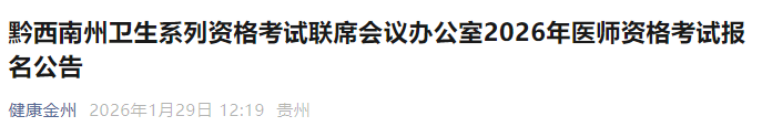 貴州黔西南考點2026年醫(yī)師資格考試報名|審核|考試安排已公布!請相關(guān)考生及時查看,做好報名審核準(zhǔn)備!