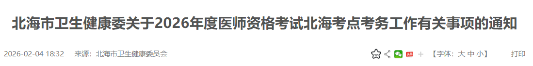 北海市衛(wèi)生健康委關(guān)于2026年度醫(yī)師資格考試北??键c(diǎn)考務(wù)工作有關(guān)事項(xiàng)的通知