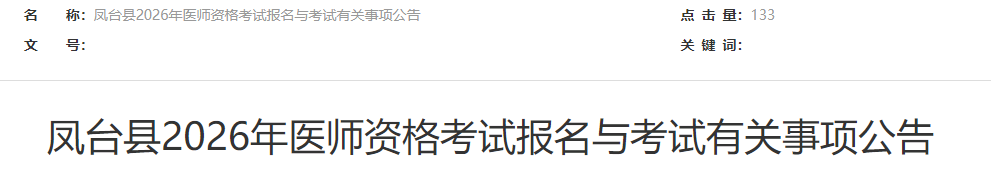 安徽淮南鳳臺縣2026年醫(yī)師資格考試報名|審核|繳費|考試安排已公布!請相關(guān)考生及時查看,按時完成報名審核!