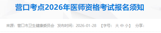 遼寧營口2026年醫(yī)師資格考試報名&現(xiàn)場審核時間安排及要求已公布!請相關(guān)考生及時查看,做好報名審核準備!