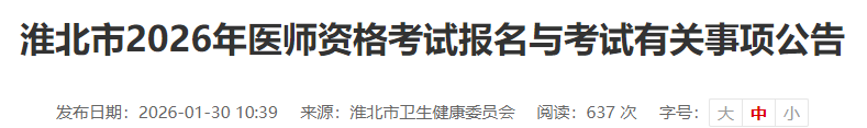 安徽淮北2026年醫(yī)師資格考試報名|審核|繳費(fèi)|考試安排