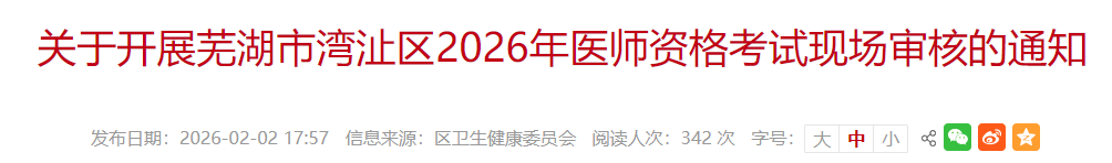 根據蕪湖市考點統一安排,現將我區(qū)2026年醫(yī)師資格考試現場審核工作具體事項通知如下: