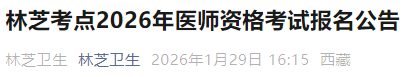 西藏林芝2026年醫(yī)師資格考試報(bào)名&現(xiàn)場審核安排及要求已公布!請(qǐng)相關(guān)考生及時(shí)查看,做好報(bào)名審核準(zhǔn)備!