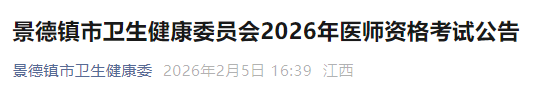 江西景德鎮(zhèn)2026年醫(yī)師資格考試報名|審核|繳費|考試時間安排已公布!請相關考生及時查看,做好報名審核準備!