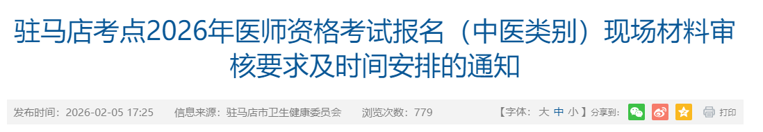 河南駐馬店2026年醫(yī)師資格考試(中醫(yī))報名審核時間|要求已公布!請相關(guān)考生及時查看,按時完成報名審核!