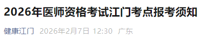 廣東江門考點(diǎn)2026年醫(yī)師資格考試報(bào)名&審核安排及具體要求已公布!請(qǐng)相關(guān)考生及時(shí)查看,按時(shí)完成報(bào)名審核!