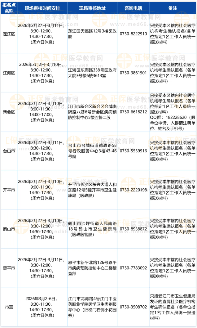 廣東江門考點(diǎn)2026年醫(yī)師資格考試報(bào)名&審核安排及具體要求