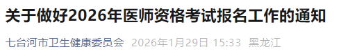 黑龍江七臺(tái)河2026年醫(yī)師資格考試報(bào)名&審核&繳費(fèi)&考試安排已公布!請(qǐng)相關(guān)考生及時(shí)查看,做好報(bào)名審核準(zhǔn)備!