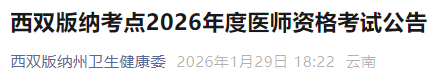 云南西雙版納2026年醫(yī)師資格考試報(bào)名|審核|繳費(fèi)|考試安排已公布!請相關(guān)考生及時(shí)查看,做好報(bào)名審核準(zhǔn)備!