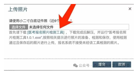 (四)報(bào)名照片:考生網(wǎng)上報(bào)名前,先按要求準(zhǔn)備近期6個(gè)月內(nèi)正面免冠小2寸白底證件數(shù)碼彩色證件照(照片必須清晰,亮度足夠,頭像占照片的2/3,露眉露耳,jpg/jpeg格式)。需按照系統(tǒng)提示內(nèi)容下載并運(yùn)行“醫(yī)考報(bào)名照片檢測工具”(如圖),網(wǎng)報(bào)系統(tǒng)只接受經(jīng)該工具檢測通過且保存后的照片進(jìn)行上傳,照片不符合要求的,不予進(jìn)行資格審核。請廣大考生提前準(zhǔn)備,以免影響考試報(bào)名。
