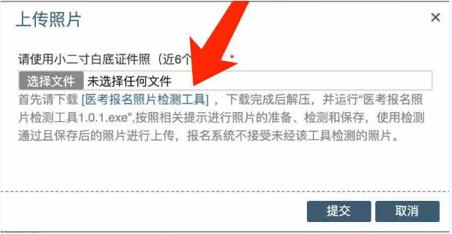 (一)考生在網(wǎng)上報(bào)名系統(tǒng)上傳個(gè)人小二寸白底證件照時(shí),應(yīng)按照系統(tǒng)提示內(nèi)容下載并運(yùn)行“醫(yī)考報(bào)名照片檢測(cè)工具”,網(wǎng)上報(bào)名系統(tǒng)只接受經(jīng)該工具檢測(cè)通過(guò)且保存后的照片進(jìn)行上傳。