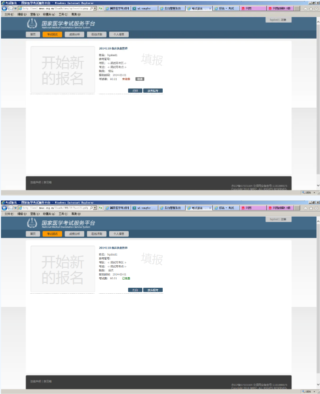 請(qǐng)各位考生在公告規(guī)定的時(shí)限內(nèi)(2026年1月29日10時(shí)至2月11日24時(shí)),登錄國(guó)家醫(yī)學(xué)考試中心官網(wǎng)(http://www.nmec.org.cn)考生服務(wù)端進(jìn)行網(wǎng)上報(bào)名,如實(shí)填寫個(gè)人信息,確保真實(shí)有效??忌瓿删W(wǎng)上報(bào)名后要向所在的試用單位報(bào)備。