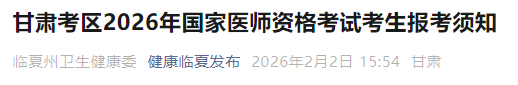 根據(jù)《國(guó)家衛(wèi)生健康委員會(huì)醫(yī)師資格考試委員會(huì)公告》(2026年第1號(hào)),依據(jù)《中華人民共和國(guó)醫(yī)師法》和《醫(yī)師資格考試暫行辦法》規(guī)定,現(xiàn)將甘肅考區(qū)2026年國(guó)家醫(yī)師資格考試考生報(bào)名有關(guān)事項(xiàng)通知如下: