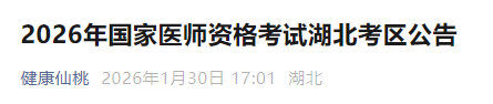 根據(jù)《中華人民共和國醫(yī)師法》、《醫(yī)師資格考試暫行辦法》規(guī)定和《國家衛(wèi)生健康委員會醫(yī)師資格考試委員會公告》(2026年第1號)精神,結(jié)合湖北考區(qū)實際,現(xiàn)將2026年國家醫(yī)師資格考試有關(guān)事項公告如下:
