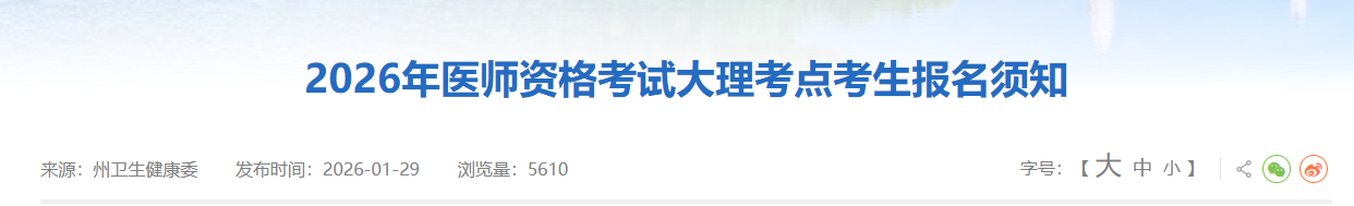 云南大理2026年醫(yī)師資格考試報(bào)名&審核&繳費(fèi)安排已公布!請(qǐng)相關(guān)考生及時(shí)查看,做好報(bào)名審核準(zhǔn)備!