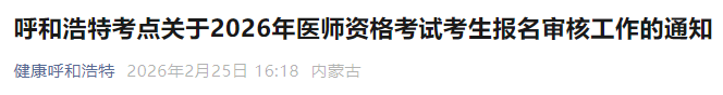 內(nèi)蒙古呼和浩特2026年醫(yī)師資格考試現(xiàn)場審核時間已確定!