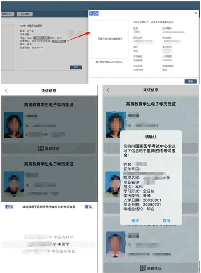 2001年以來國家承認的各類高等教育學歷證書可通過學信網(wǎng)掃碼授權后進行學歷驗證。(注:為方便考生,以往報名參加過醫(yī)考且已進行學信網(wǎng)比對的考生,無需掃碼驗證)。