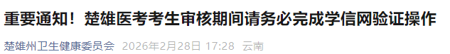 重要通知!楚雄醫(yī)考考生審核期間請務必完成學信網(wǎng)驗證操作