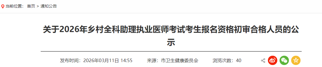 河南鶴壁2026年鄉(xiāng)村全科助理醫(yī)師考試報(bào)考資格初審?fù)ㄟ^(guò)人員名單