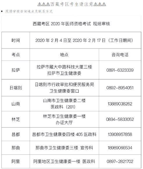 2020年西藏醫(yī)師資格報(bào)名現(xiàn)場(chǎng)審核時(shí)間、地點(diǎn)