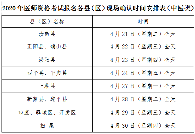 河南駐馬店考點(diǎn)2020年國(guó)家醫(yī)師資格考試中醫(yī)類別現(xiàn)場(chǎng)確認(rèn)工作安排