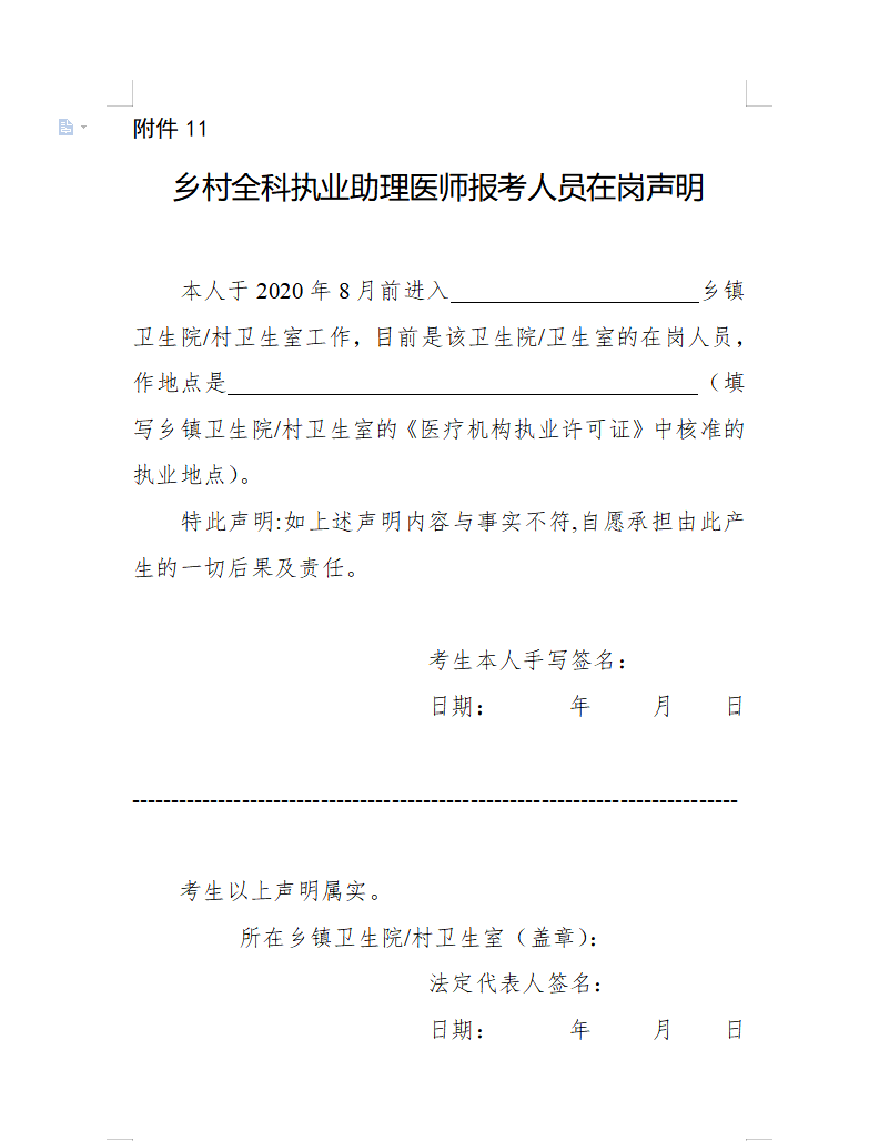 鄉(xiāng)村全科助理執(zhí)業(yè)醫(yī)師報考人員在崗聲明2022