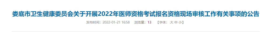 婁底考點2022年醫(yī)師資格考試報名資格現(xiàn)場審核工作有關(guān)事項的公告