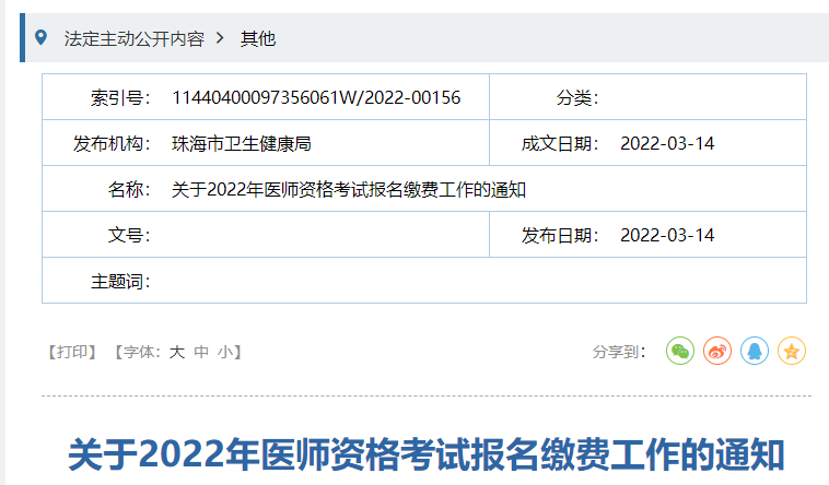 珠??键c關(guān)于2022年醫(yī)師資格考試報名繳費的通知發(fā)布