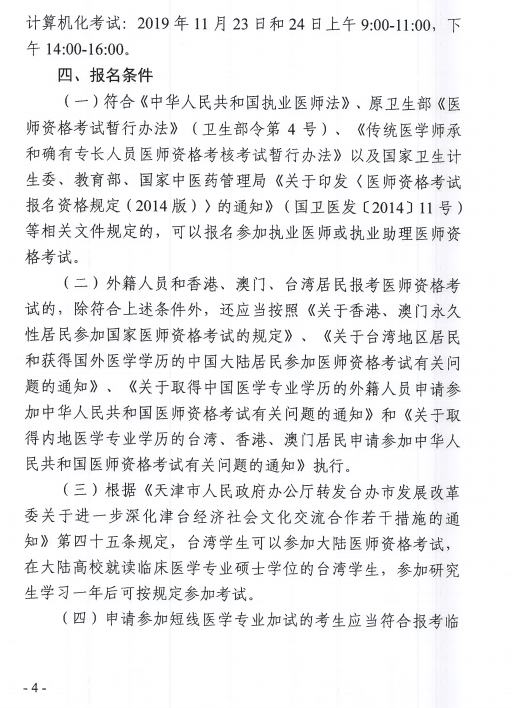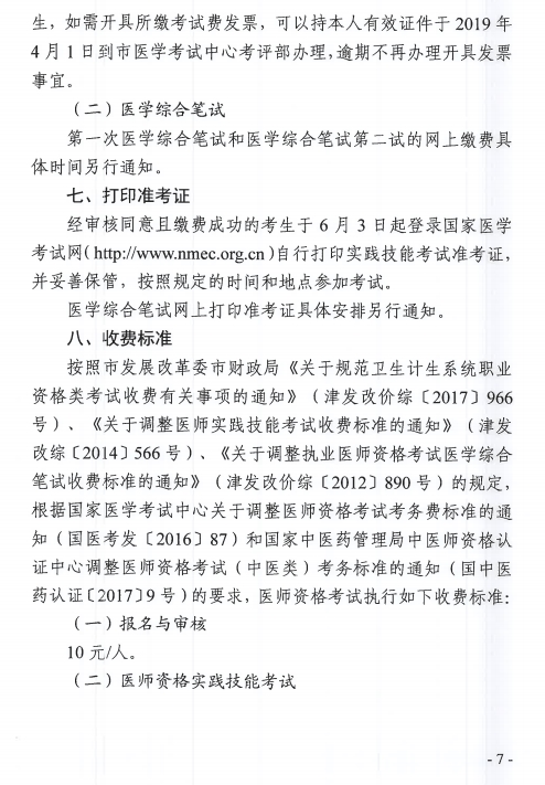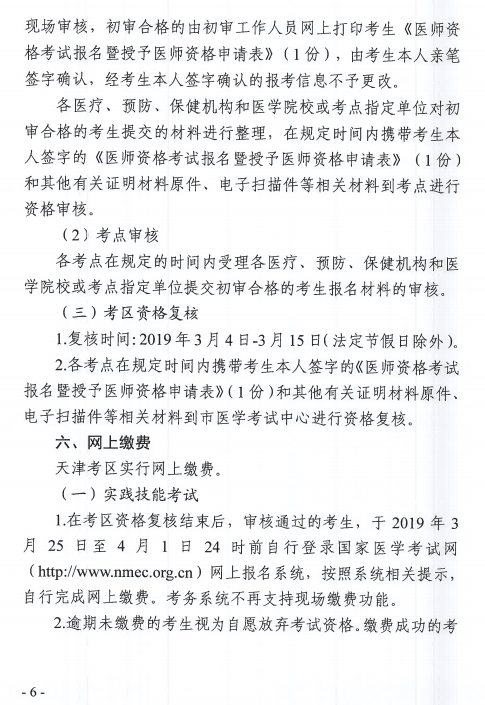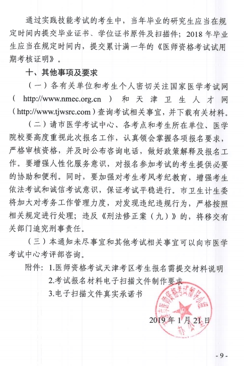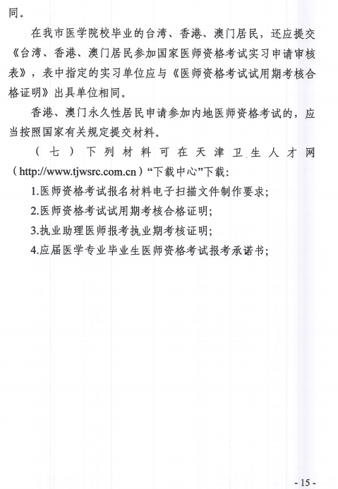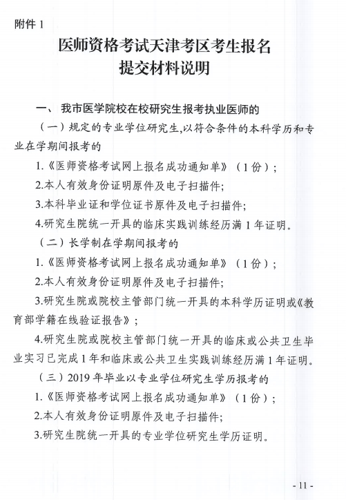 官方文件下載:天津市醫(yī)師資格考試領(lǐng)導(dǎo)小組辦公室關(guān)于做好2019年醫(yī)師資格考試天津考區(qū)報(bào)名工作的通知.pdf