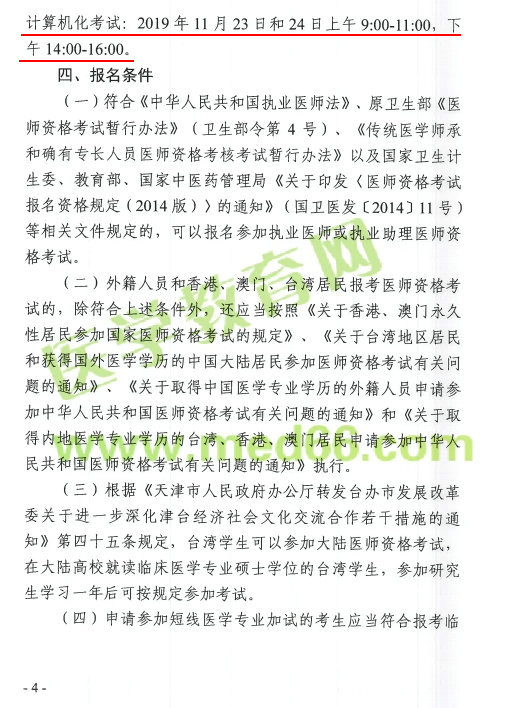 “2019年天津市繼續(xù)開展醫(yī)師資格“一年兩試”試點(diǎn)工作”由醫(yī)學(xué)教育網(wǎng)編輯整理搜集,更多考試信息敬請(qǐng)關(guān)注醫(yī)學(xué)教育網(wǎng)。