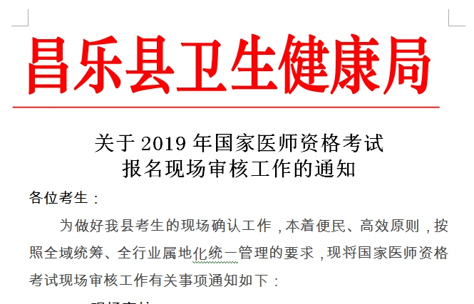 山東濰坊昌樂(lè)縣關(guān)于2019年國(guó)家醫(yī)師資格考試報(bào)名現(xiàn)場(chǎng)審核工作的通知