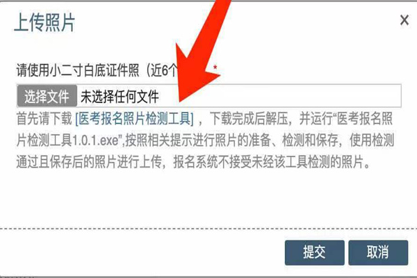 (一)考生在網(wǎng)報系統(tǒng)上傳個人小二寸白底證件照時,必須按照系統(tǒng)提示內(nèi)容下載并運(yùn)行“醫(yī)考報名照片檢測工具”,網(wǎng)報系統(tǒng)只接受經(jīng)該工具檢測通過且保存后的照片進(jìn)行上傳。