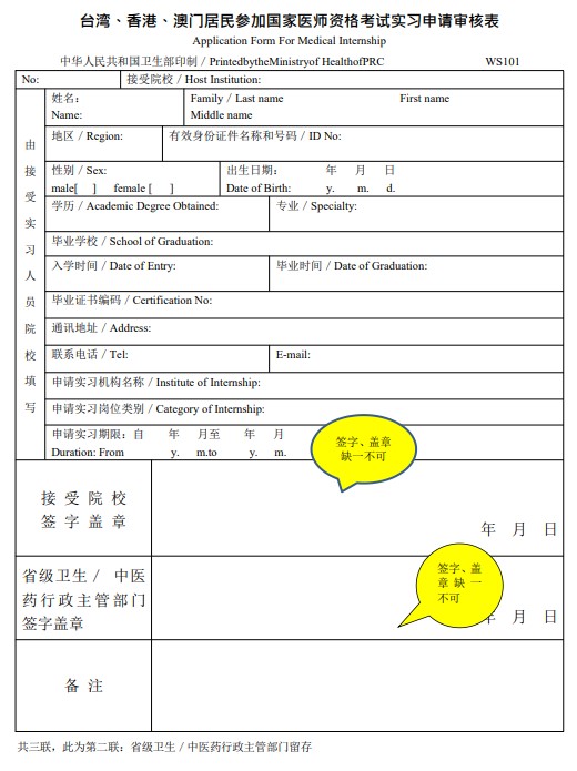 臺灣、香港、澳門居民參加國家醫(yī)師資格考試實習(xí)申請審核表3