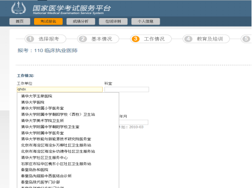 答:在系統(tǒng)中以上兩者的填寫方式相同。如填寫工作單位,在網(wǎng)上報名系統(tǒng)中“工作單位”可以通過輸入拼音首字母或直接填寫工作單位名稱的方式檢索,在查詢到的下拉框中選擇您的工作單位即可。當(dāng)鼠標(biāo)從工作單位項移開后,如果工作單位文本框顯示黃色表示您輸入的工作單位沒有收錄在網(wǎng)站工作單位字典中(若出現(xiàn)此種情況,請您仔細(xì)核對輸入的工作單位是否有誤,若確認(rèn)無誤,則需申請?zhí)砑訑?shù)據(jù),請按系統(tǒng)提示登陸相關(guān)鏈接進(jìn)行相應(yīng)的操作。考生可待后臺數(shù)據(jù)庫添加成功后在菜單中選擇。);顯示紅色表示您未輸入工作單位;顯示灰色表示您選擇的工作單位存在系統(tǒng)中并可以使用。如下圖: