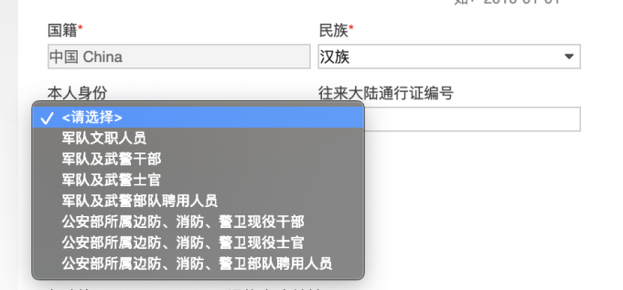 答:在“本人身份”下拉列表中選擇自己相應(yīng)的身份即可,注意現(xiàn)役與聘用人員的區(qū)別。如下圖: