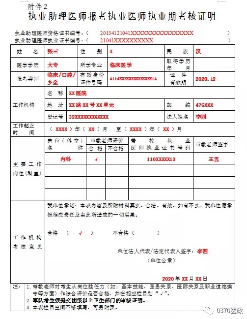3.2022年《醫(yī)師資格考試試用期考核證明》(附表1)或《執(zhí)業(yè)助理醫(yī)師報(bào)考執(zhí)業(yè)醫(yī)師執(zhí)業(yè)期考核證明》(附表2)