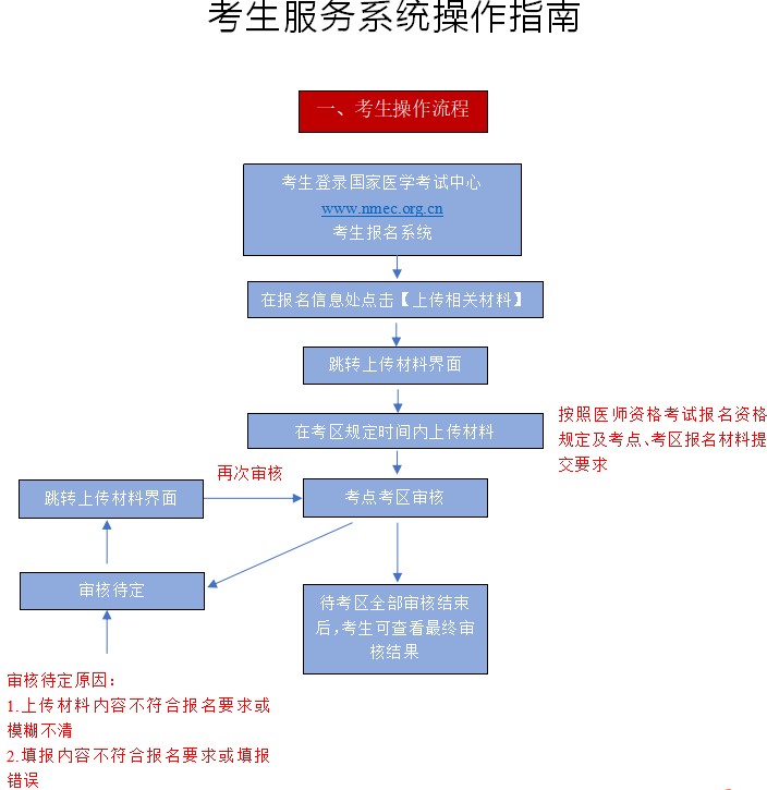 二、線上提交材料方法:考生網(wǎng)上報(bào)名后,須在國(guó)家醫(yī)學(xué)考試中心官網(wǎng)(http://www.nmec.org.cn)考生服務(wù)系統(tǒng)中進(jìn)行材料提交。目前線上審核系統(tǒng)已進(jìn)行了升級(jí)和完善,考生應(yīng)按照《考生服務(wù)系統(tǒng)操作指南》(附件)上傳所需報(bào)名材料原件彩色掃描件,上傳材料必須與網(wǎng)上填報(bào)信息一致。請(qǐng)考生及時(shí)關(guān)注查看個(gè)人審核狀態(tài)或系統(tǒng)內(nèi)消息通知。