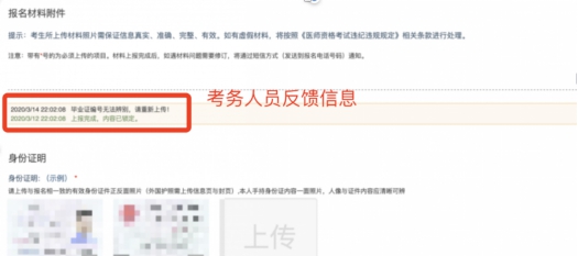 考生材料上傳完成后,等待審核反饋通知(可能是電話、短信或系統(tǒng)應(yīng)用內(nèi)的消息通知等形式)??忌鷳?yīng)在考點、考區(qū)審核期間,及時登錄報名網(wǎng)站訪問文件上傳頁面,在頁面上部可查看反饋意見,若考生收到審核電話反饋,應(yīng)根據(jù)反饋內(nèi)容,對解鎖的材料進行調(diào)整并重新完成上傳。