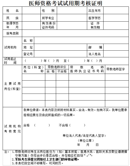 附件下載: 附件:醫(yī)師資格考試試用期考核證明