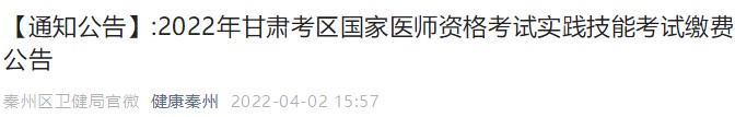 秦州考點2022年甘肅考區(qū)國家醫(yī)師資格考試實踐技能考試繳費公告